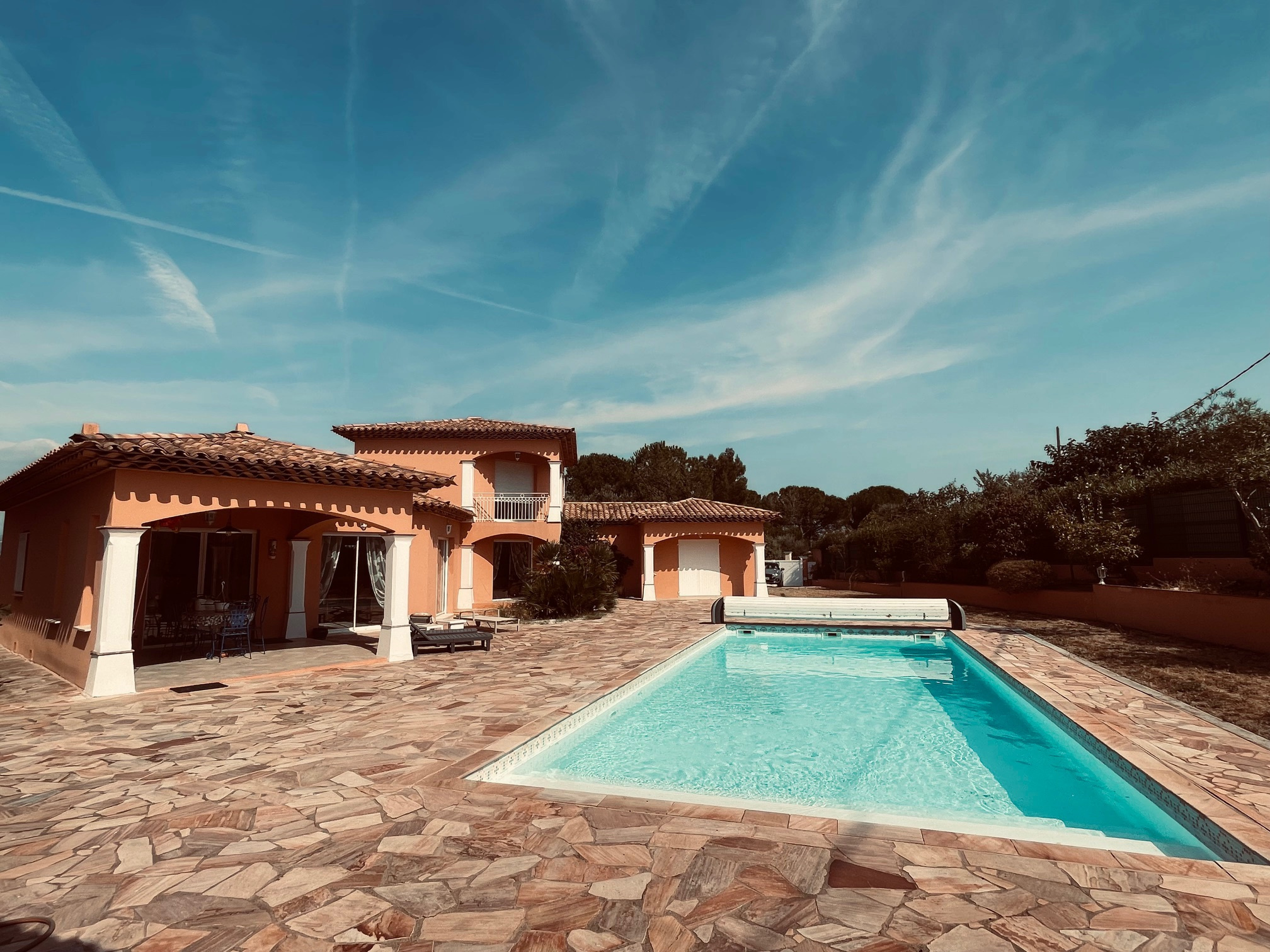 A Roquebrune sur Argens, dans un environnement résidentiel, au calme, découvrez cette somptueuse villa provençale édifiée sur un terrain aménagé de 2000m2 .Composée d'une villa principale avec de belles prestations.Un vaste hall d'entrée donnant sur un spacieux salon séjour très lumineux grâce à ses grandes baies vitrées en galandage donnant un accés direct à la terrasse et à l'espace piscine.Une cheminée double face dans le séjour communiquant avec la cuisine séparée.