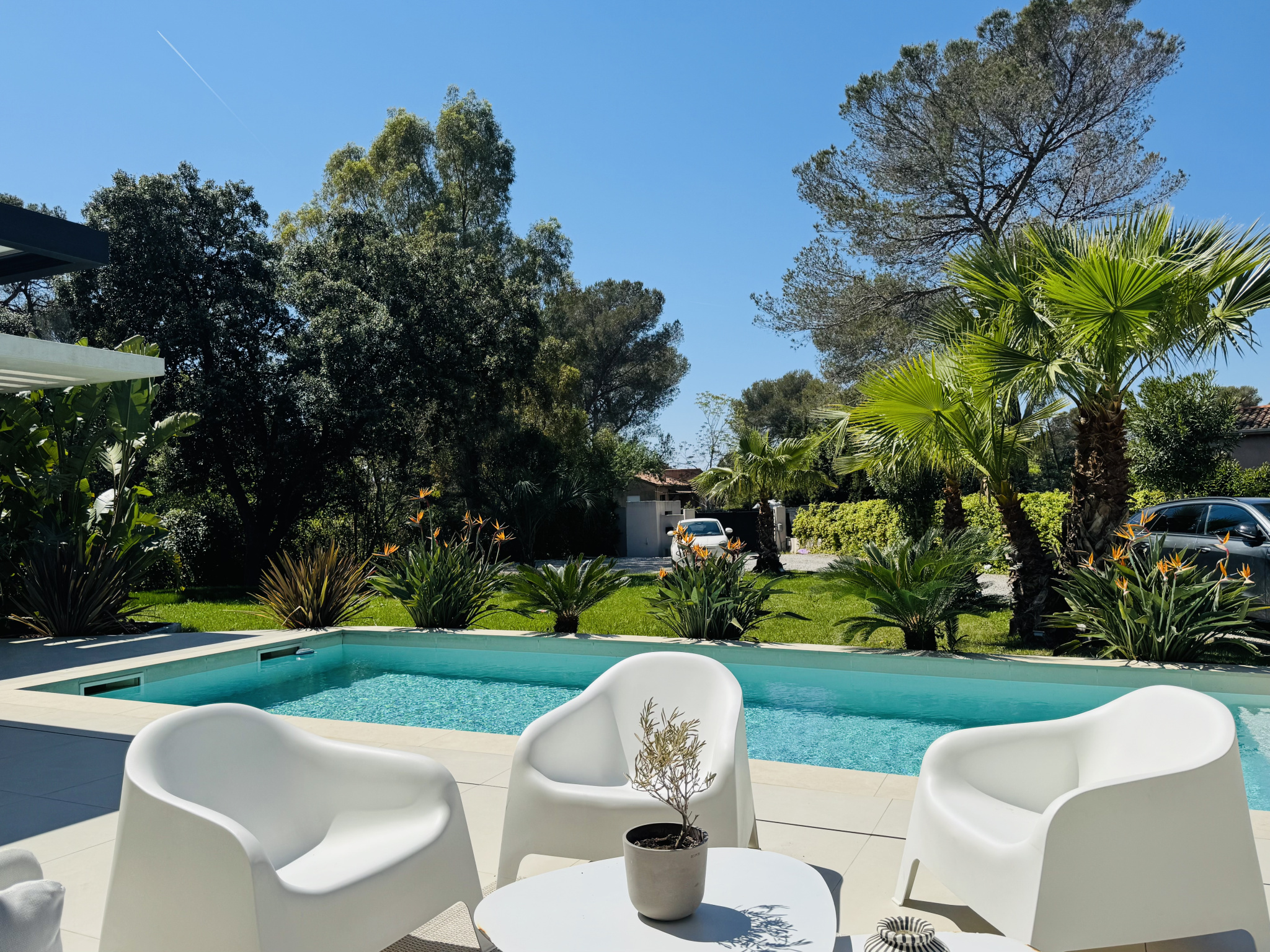 A l'extérieur, le jardin, soigneusement aménagé, invite à la détente et à la convivialité. Vous profiterez de la grande piscine, dans un environnement calme et préservé, sans vis-à-vis.
