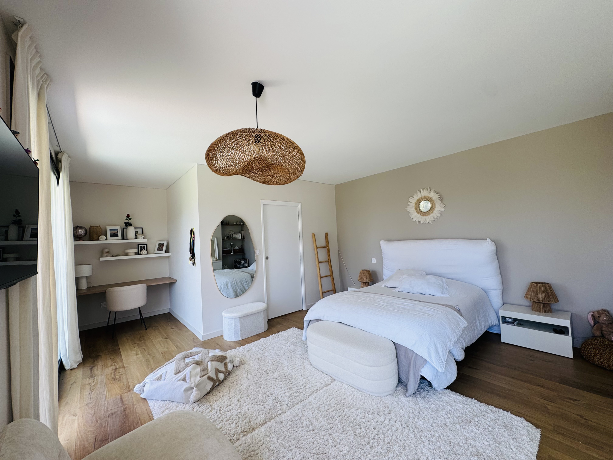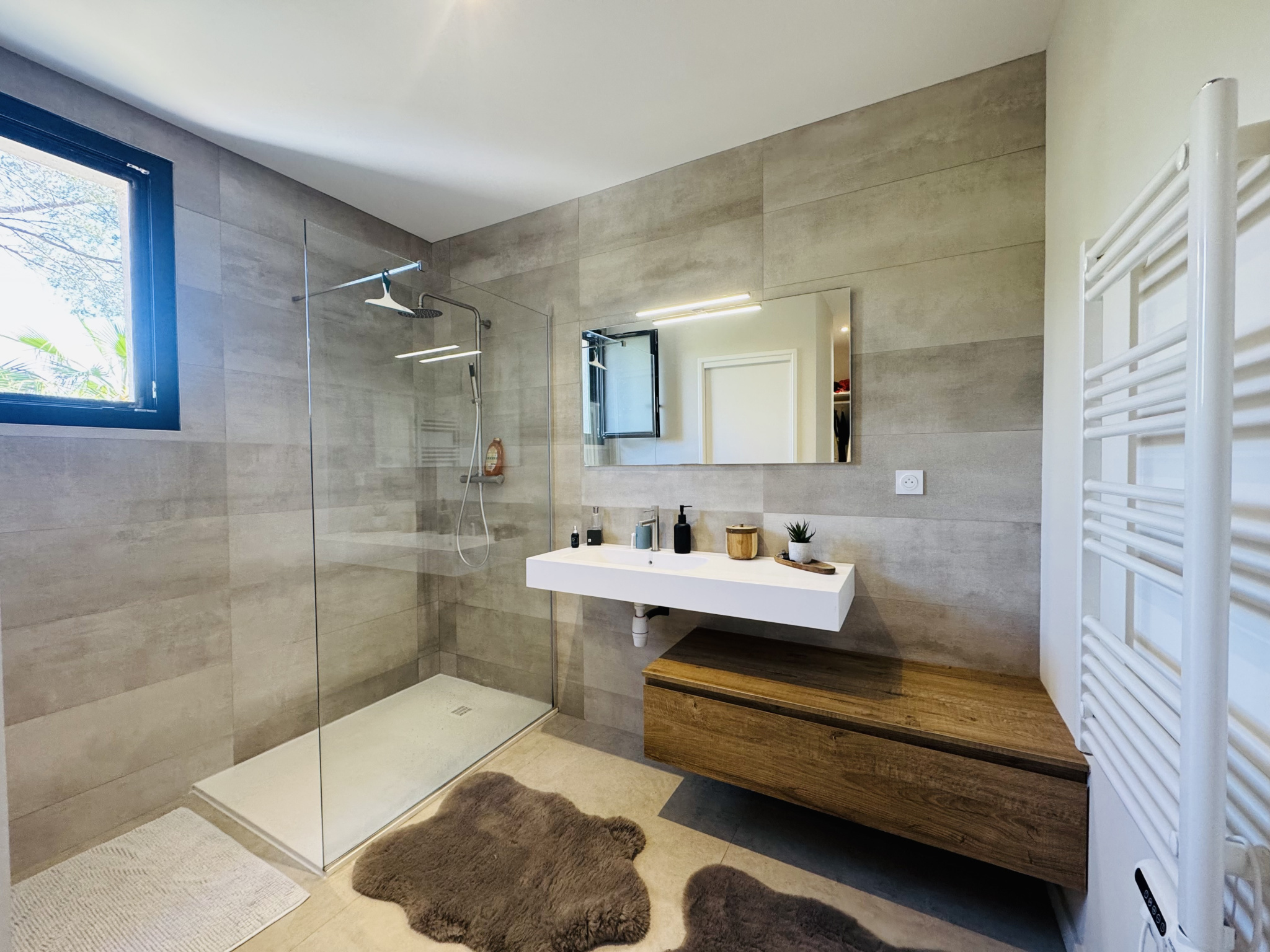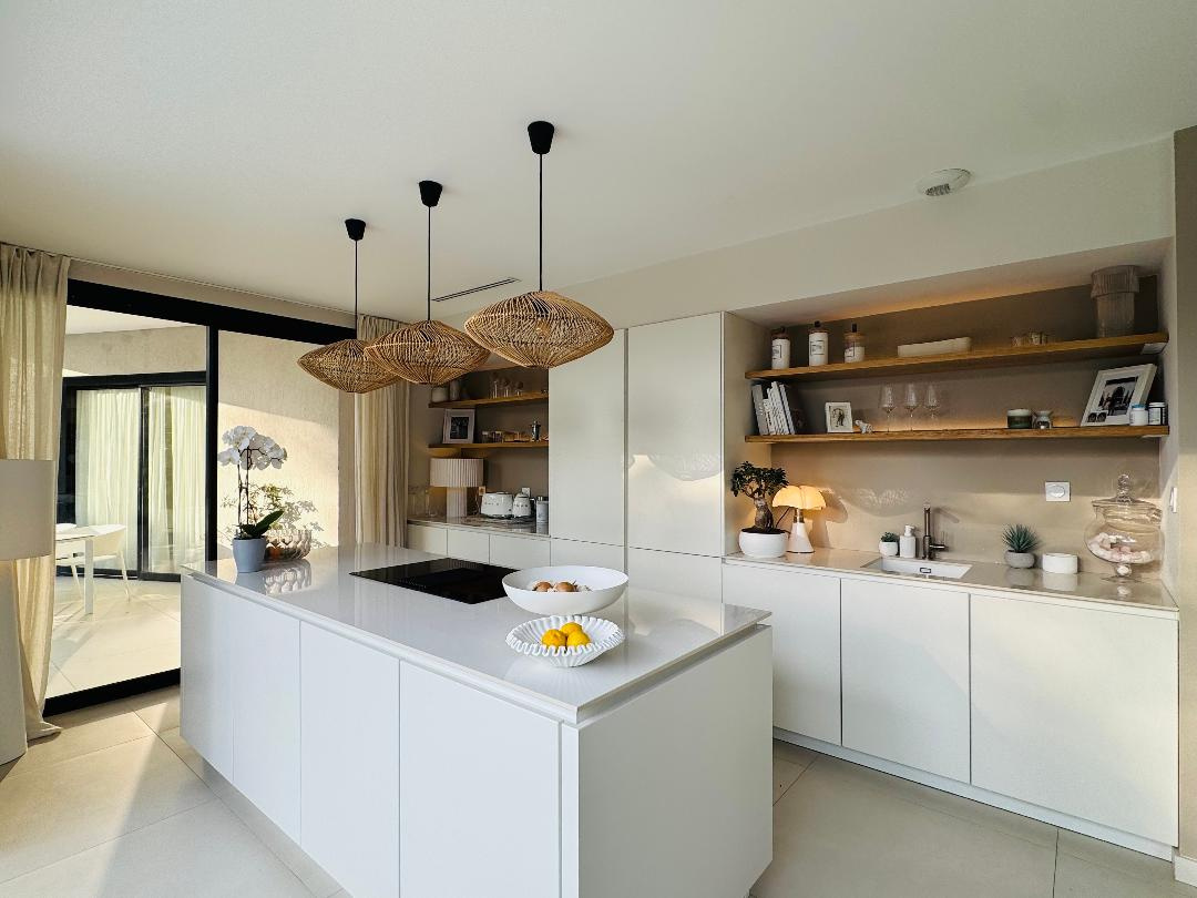 La villa se compose d'une vaste pièce de vie baignée de lumière, ouverte sur une élégante cuisine contemporaine entièrement aménagée et équipée, créant un espace convivial et fonctionnel, une suite parentale avec salle d'eau/bains, dressing, wc indépendant. Une deuxième suite de plain-pied avec salle d'eau et wc indépendant.