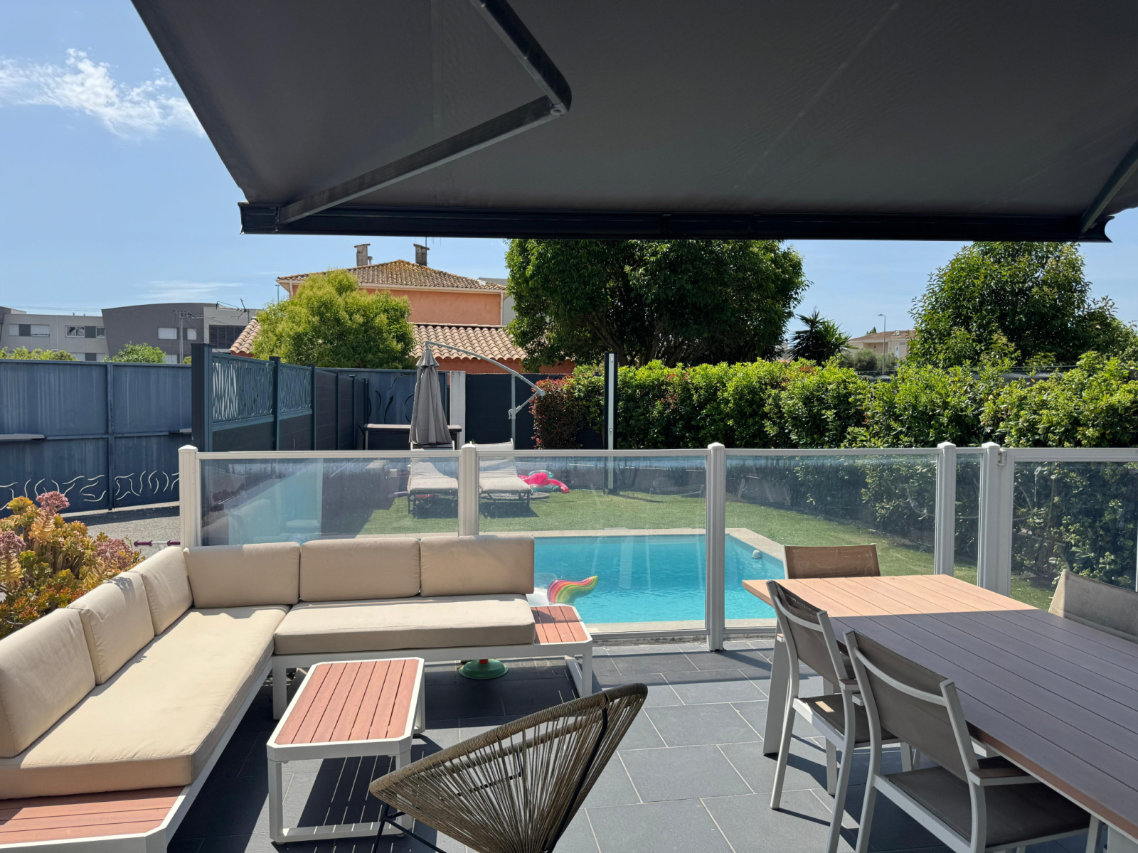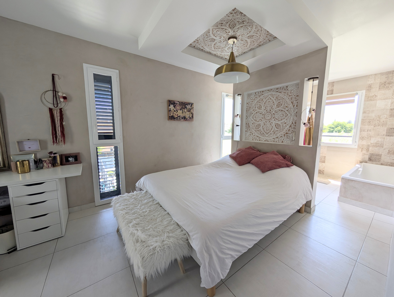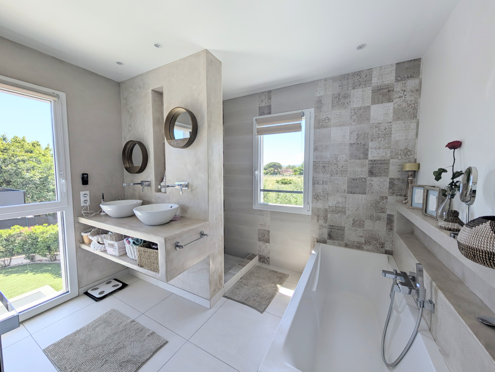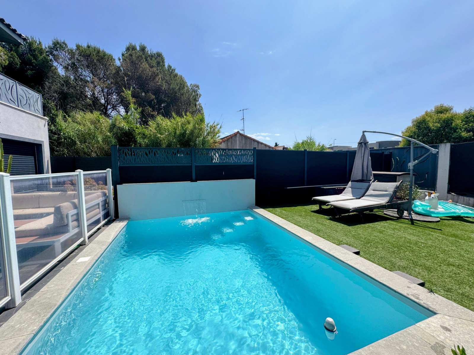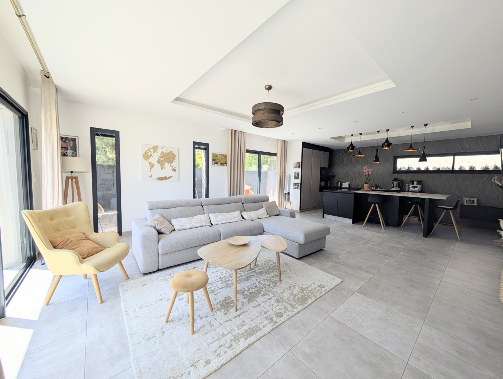 Au calme absolue et sans vis à vis maison récente de standing d'environ 150m2. Vous profiterez au rez de chaussé, d'une spacieuse et lumineuse pièce de vie avec cuisine de qualité aménagée et équipée donnant sur la terrasse, jardin et piscine. Un WC , une buanderie et un bureau. Un garage . A l'étage, Quatre chambres dont une suite parentale avec dressing salle de bain et douche, un WC séparé, une salle d'eau. Climatisation réversible, domotique, matériaux de qualité.