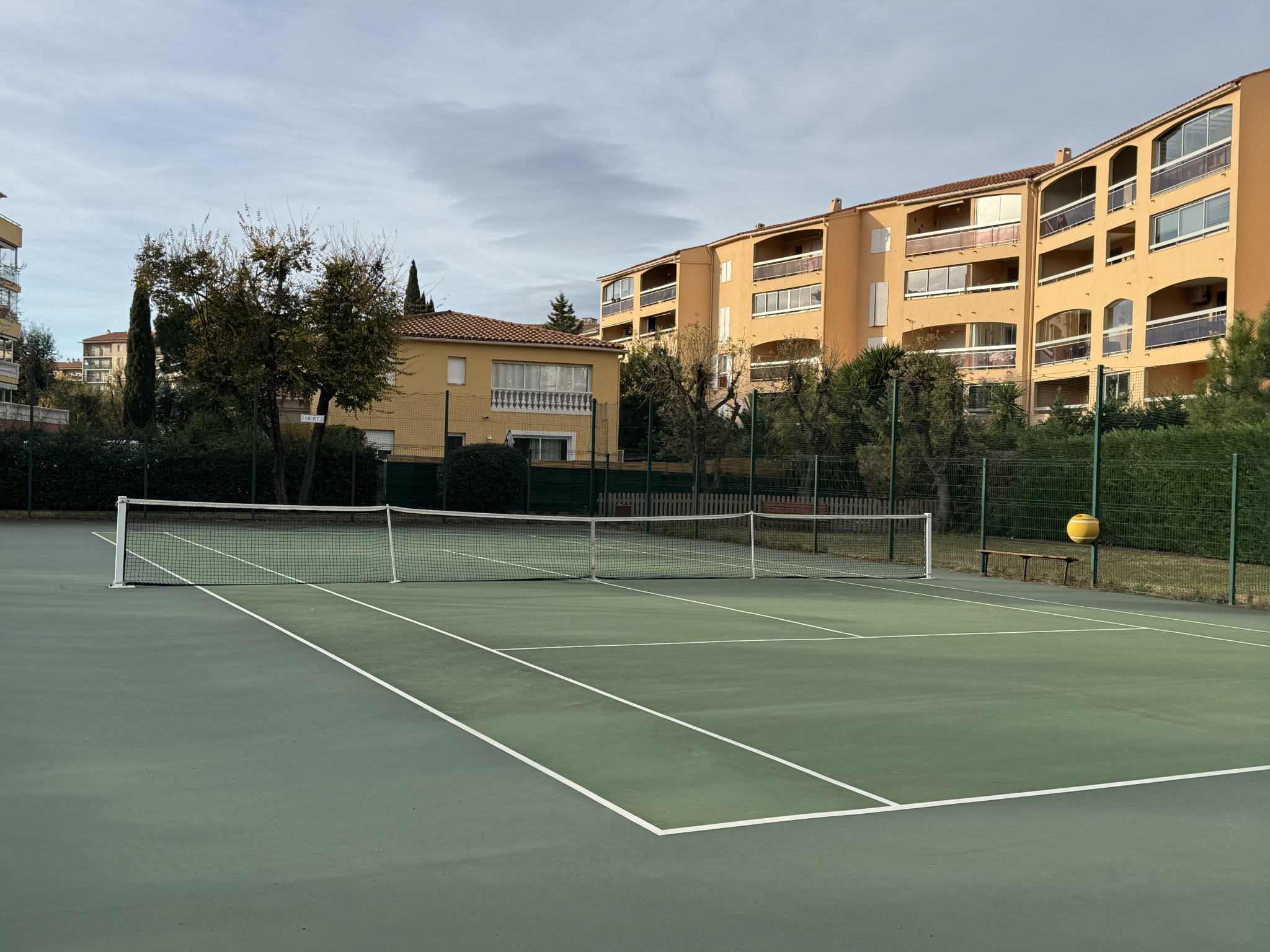 EXCLUSIVITE - Au sein d'un parc arboré, dans une résidence avec piscine et tennis. En étage élevé avec ascenseur, appartement de deux pièces refait à neuf. Il comprend entrée avec placards, wc, salle d'eau neuve, cuisine équipée, séjour avec terrasse plein ciel exposée sud et donnant sur le parc verdoyant, chambre avec terrasse. Climatisation réversible. Parking privé. Charges annuelles de 1650€ - Commerces à proximité. Pas de procédure en cours. Les mentions sur les éventuels risques auxquels ce bien peut être exposé sont disponibles sur le site www.georisques.gouv.fr