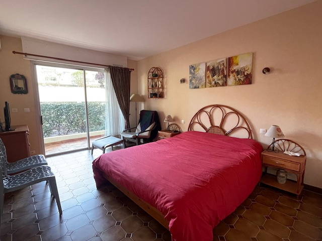 Situé dans une résidence familiale, calme et arborée, face aux bâteaux à port Fréjus, un appartement deux pièces à rafraîchir en rez de jardin.