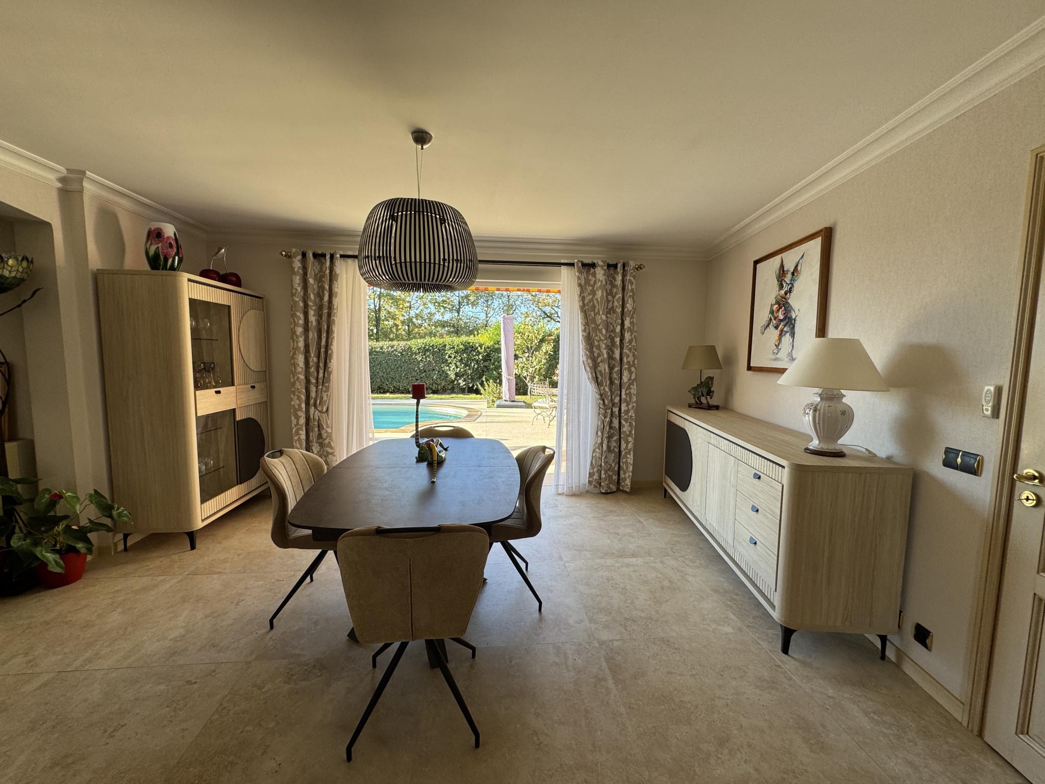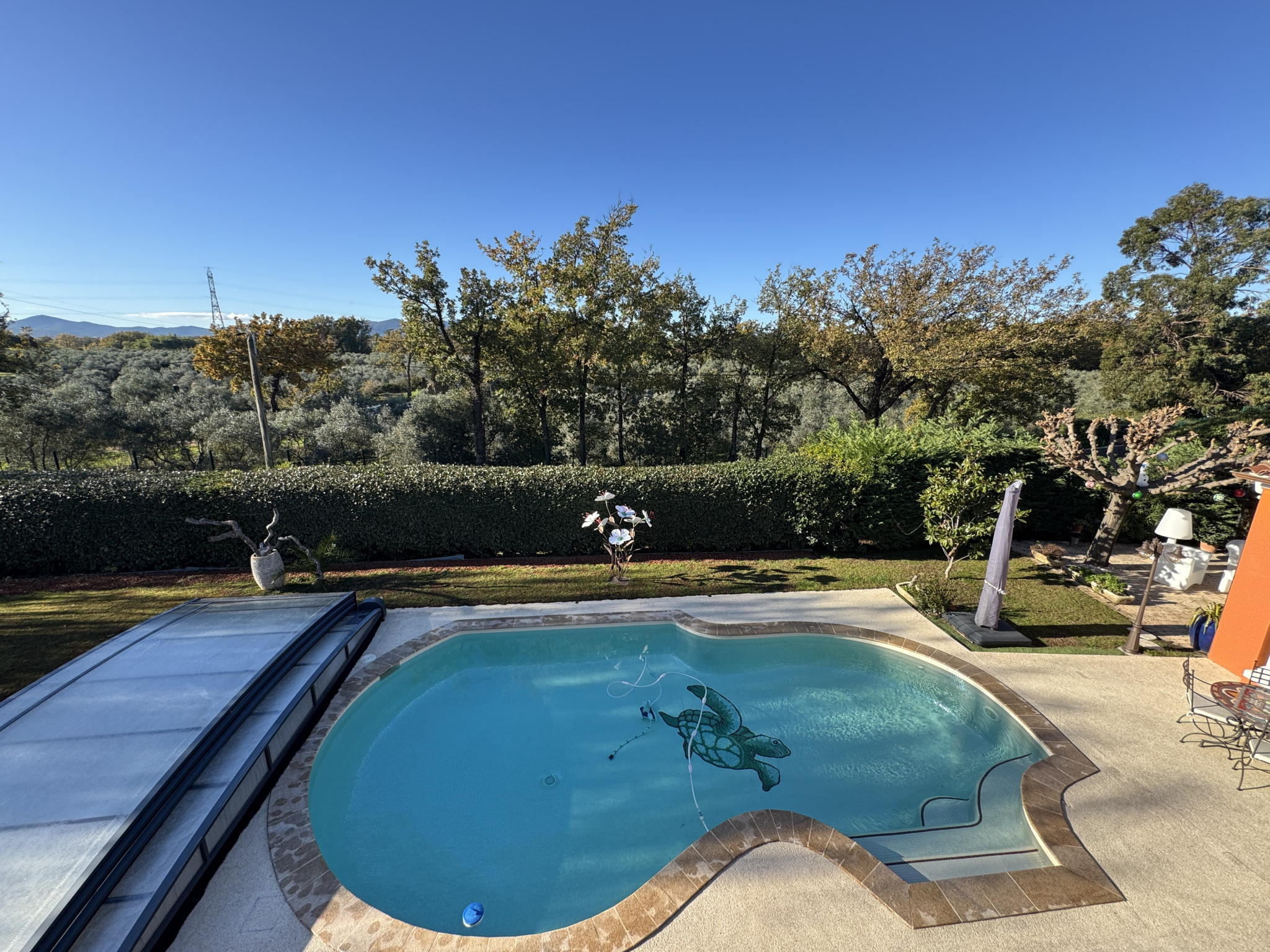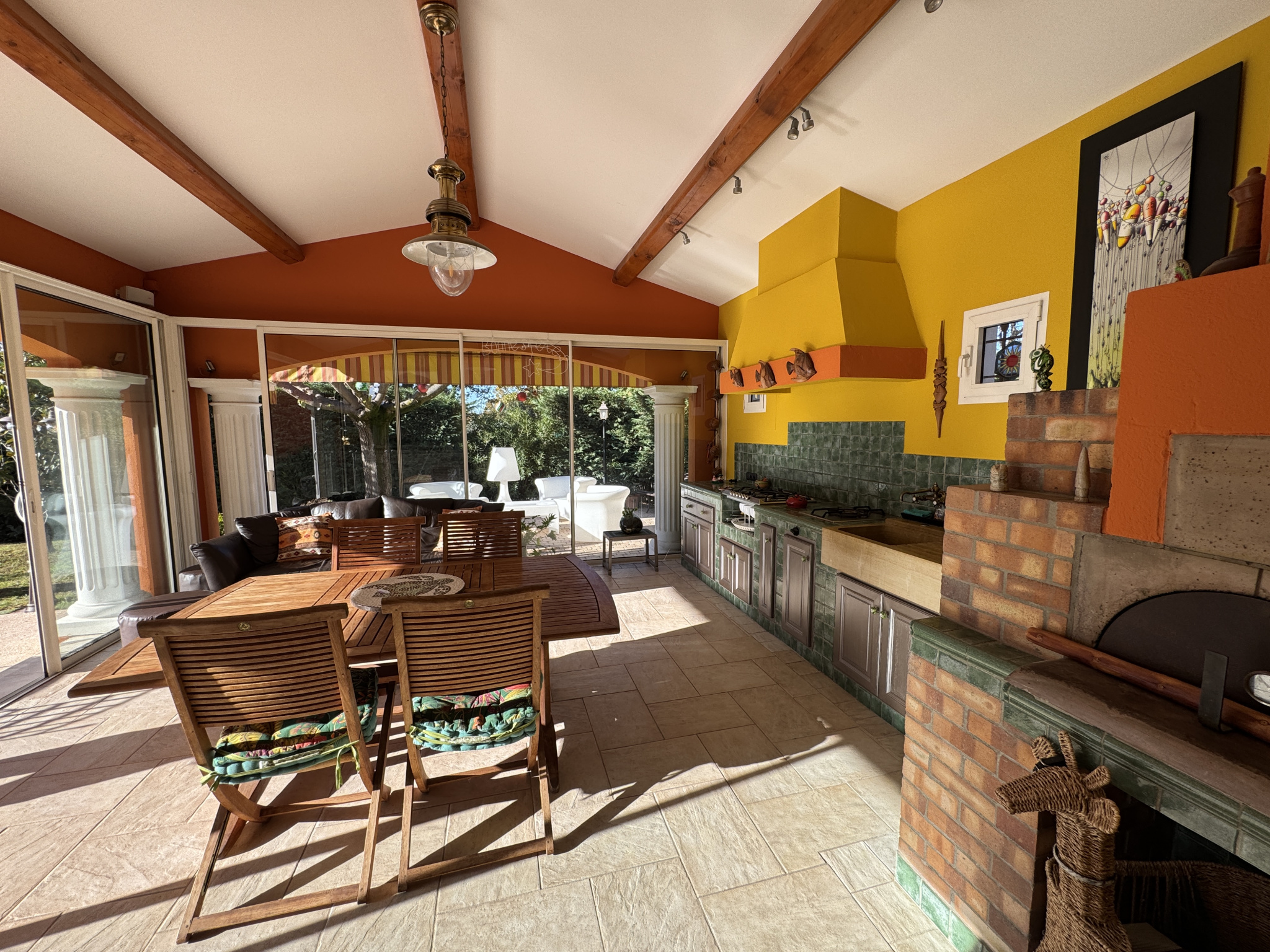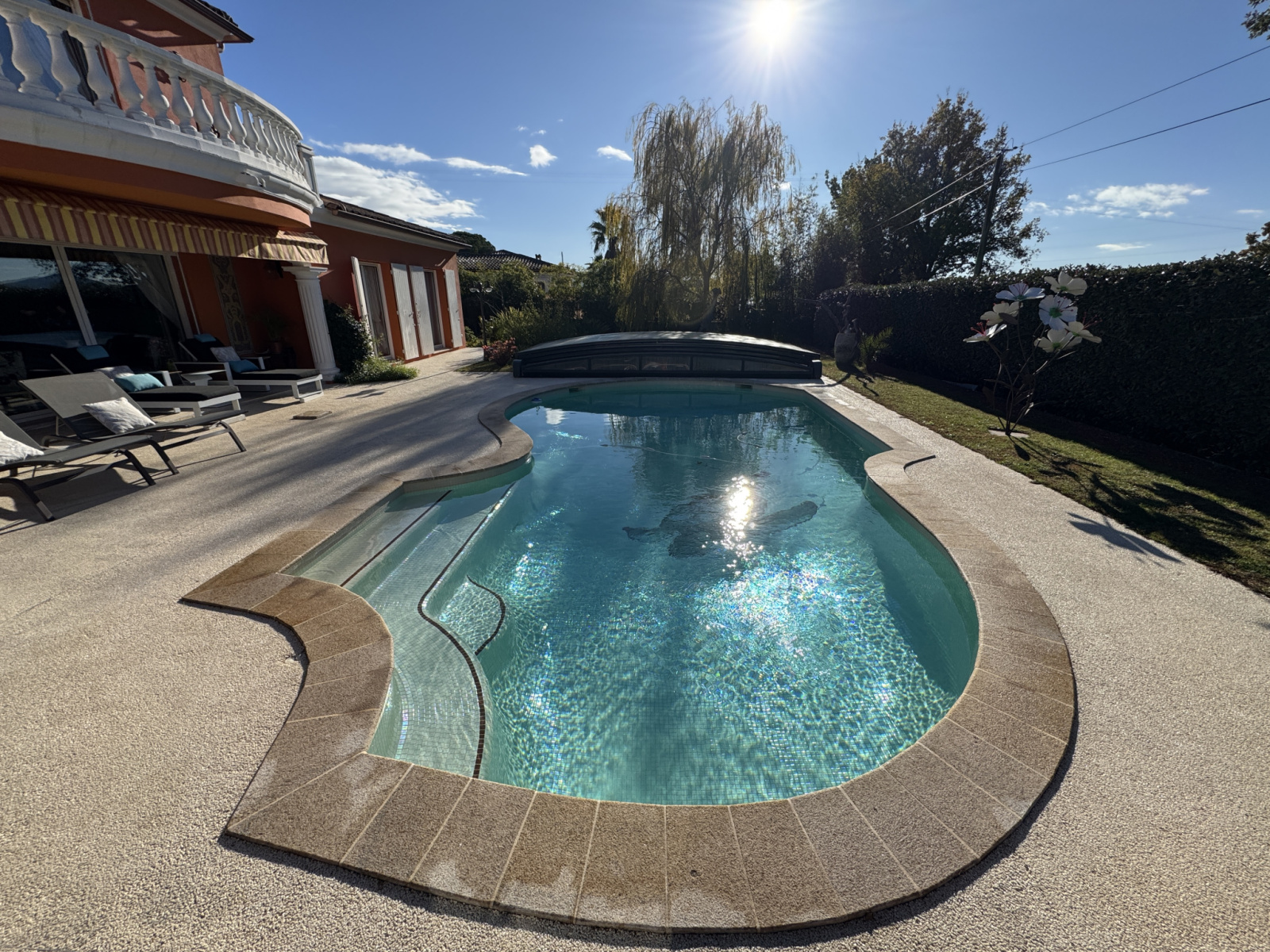 Impasse privée et calme, propriété bâtie en 2004 de 178m2 entièrement refaite avec prestations haut de gamme depuis 2017. PISCINE traditionnelle chauffée avec couverture télescopique, large terrasse exposée SO, VILLA principale comprenant au rdc hall, wc, réception avec baies vitrées à galandage, cheminée à foyer fermé, cuisine équipée, 2 belles chambres, bureau aménagé, salle d'eau, wc. A l'étage suite parentale avec salle d'eau, SAUNA et wc, dressing, 2 terrasses dont 1 avec SPA. Garages, buanderie, dépendances, et spacieuse pièce de vie avec salon d'été, terrasse et cuisine équipée. Climatisations réversibles, panneaux solaires. Le tout édifié sur 1768m² de terrain clos et arboré, avec dépendance aménageable en studio, car-port pour 3 véhicules et parkings. Portail automatique, Les mentions sur les éventuels risques auxquels ce bien peut être exposé sont disponibles sur le site www.georisques.gouv.fr