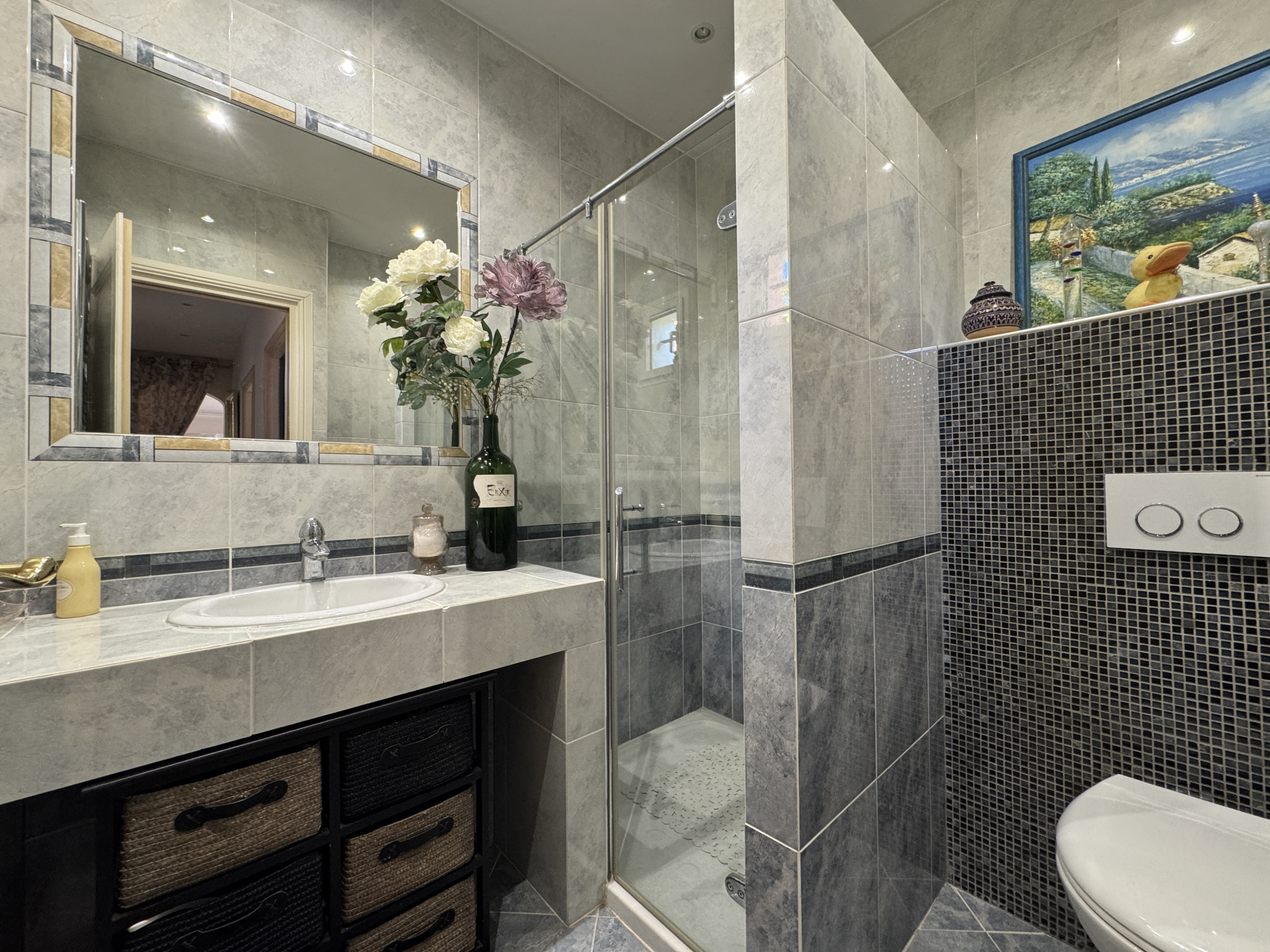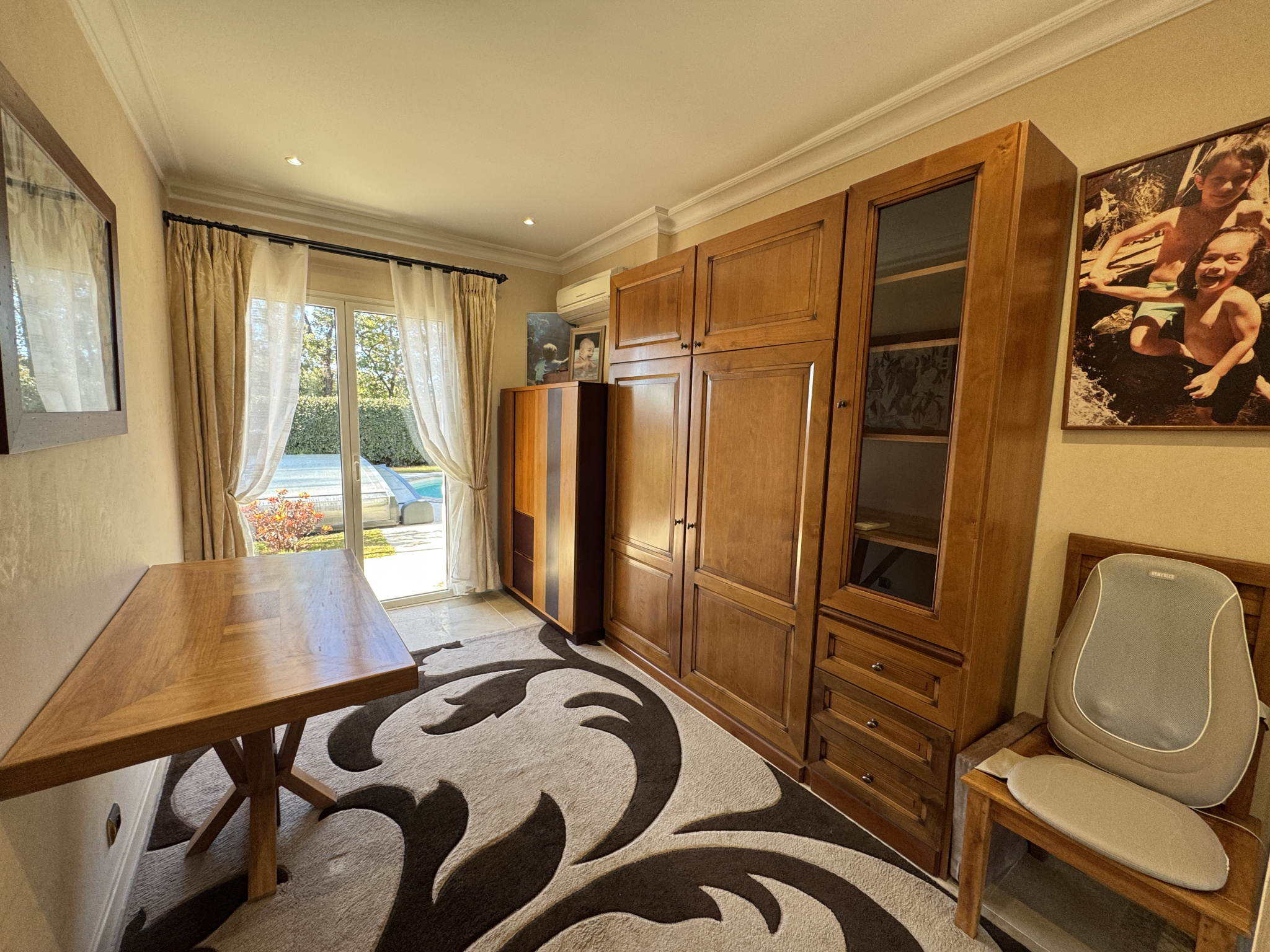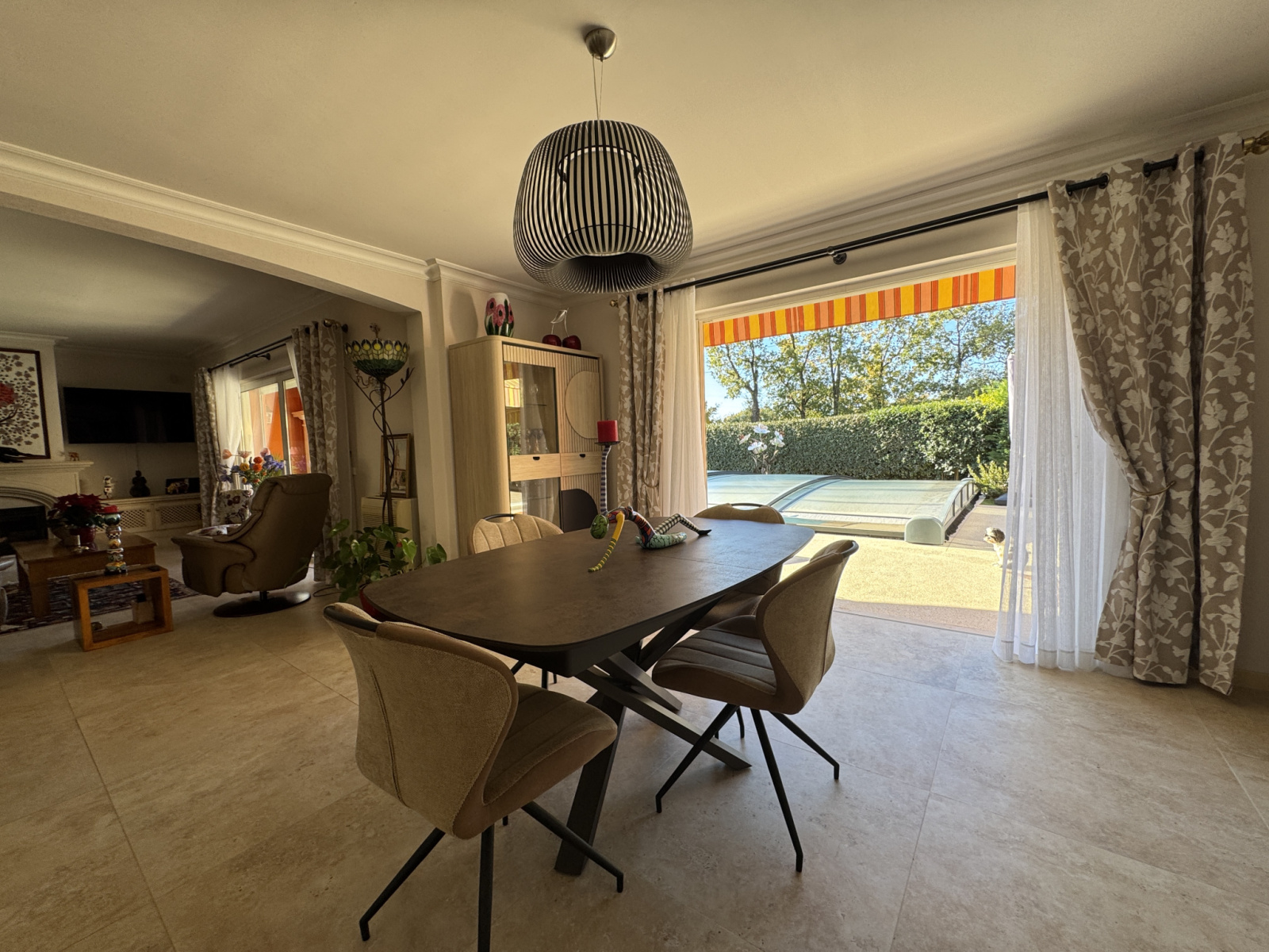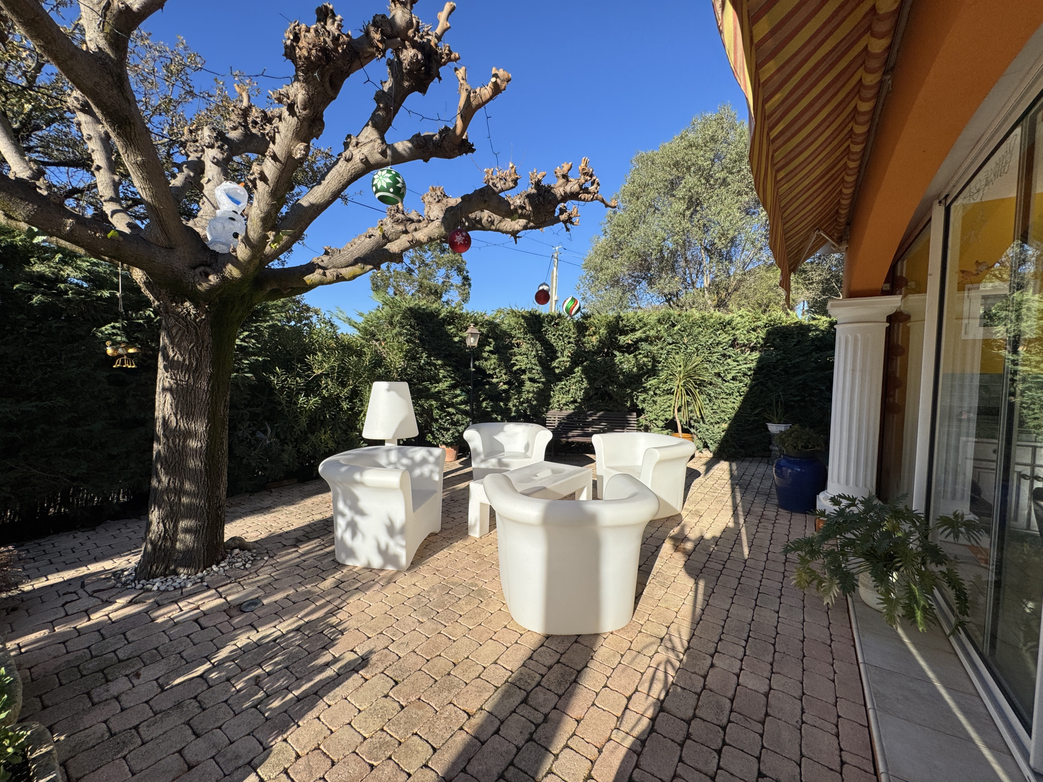 Impasse privée et calme, propriété bâtie en 2004 de 178m2 entièrement refaite avec prestations haut de gamme depuis 2017. PISCINE traditionnelle chauffée avec couverture télescopique, large terrasse exposée SO, VILLA principale comprenant au rdc hall, wc, réception avec baies vitrées à galandage, cheminée à foyer fermé, cuisine équipée, 2 belles chambres, bureau aménagé, salle d'eau, wc. A l'étage suite parentale avec salle d'eau, SAUNA et wc, dressing, 2 terrasses dont 1 avec SPA. Garages, buanderie, dépendances, et spacieuse pièce de vie avec salon d'été, terrasse et cuisine équipée. Climatisations réversibles, panneaux solaires. Le tout édifié sur 1768m² de terrain clos et arboré, avec dépendance aménageable en studio, car-port pour 3 véhicules et parkings. Portail automatique, Les mentions sur les éventuels risques auxquels ce bien peut être exposé sont disponibles sur le site www.georisques.gouv.fr