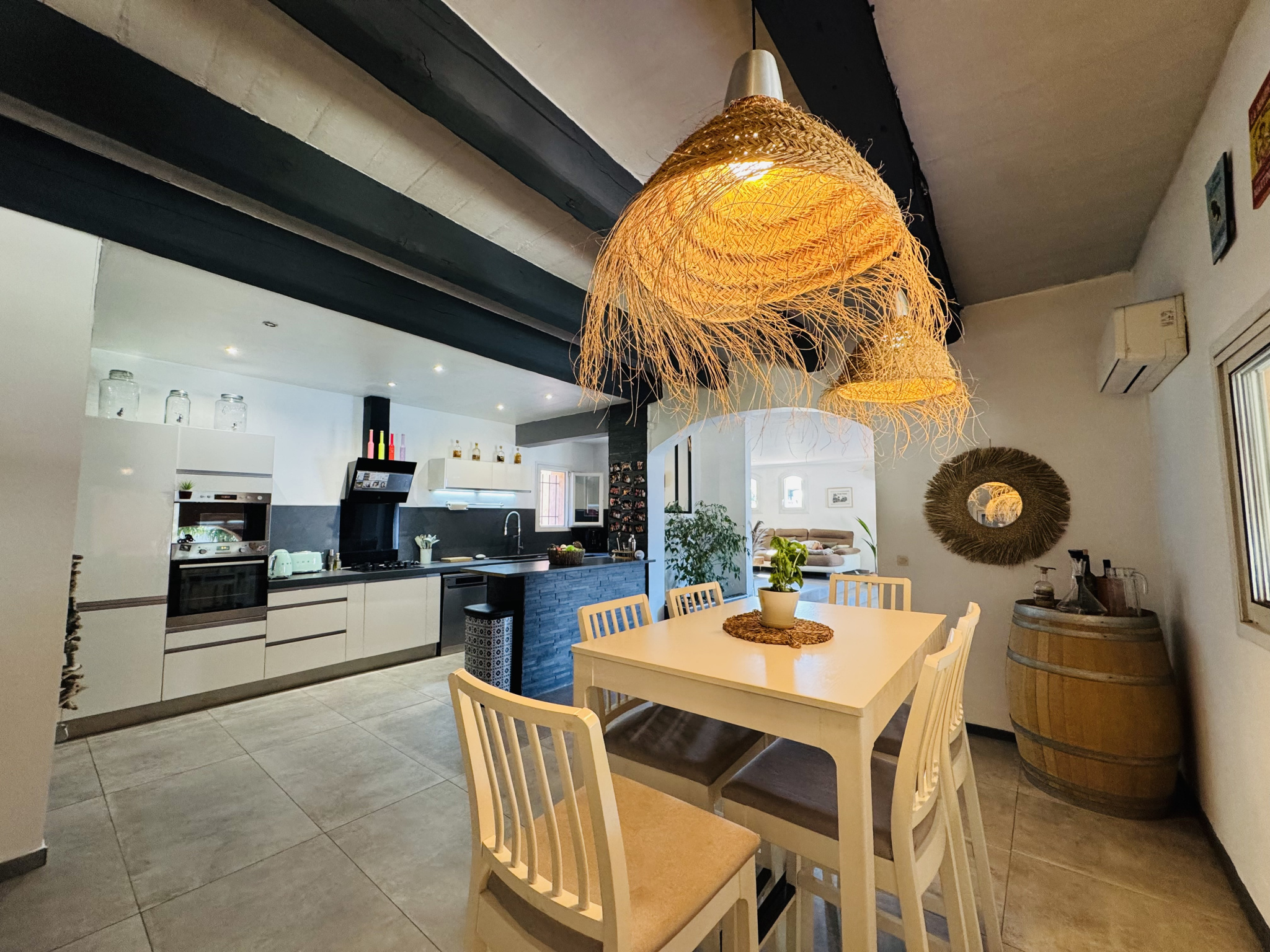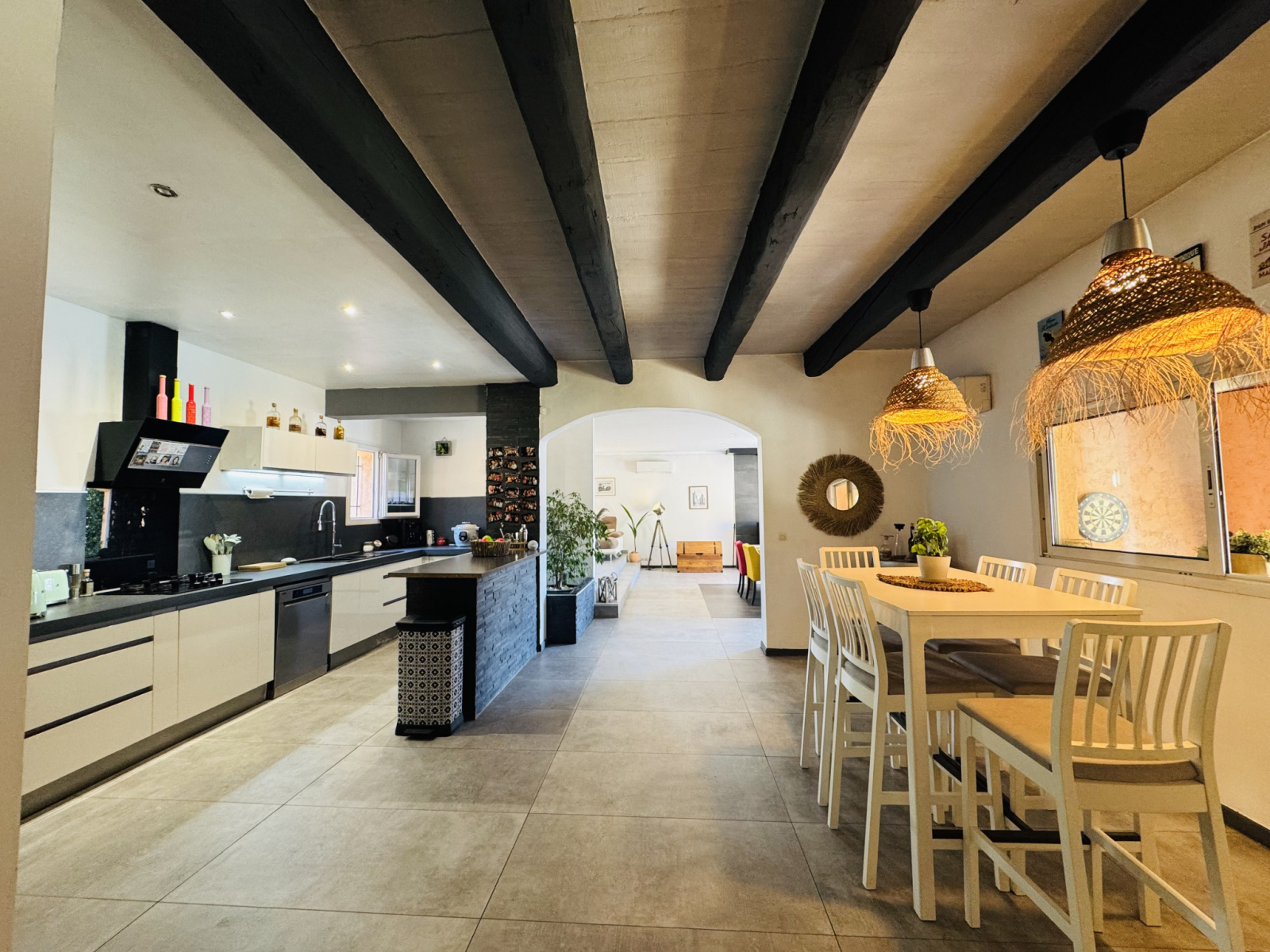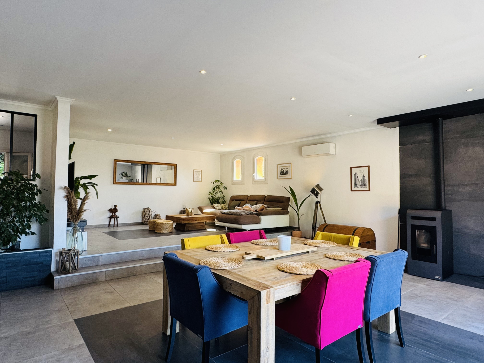 Dès l'entrée, vous serez séduit par ses volumes généreux et sa luminosité. La maison offre une belle pièce de vie de 90 m², ouverte sur une cuisine moderne, entièrement équipée et aménagée, parfaite pour recevoir.